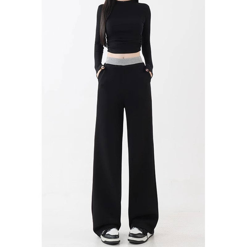 Product information: Color: #484 Black, #5484 Black Stretch: Slight stretch Pants Length: Full-length pants Waist Style: Ultra-low waist Sizes: S, M, L, XL, 2XL Thickness: Medium Fabric Name: Polyester Main Fabric Composition: Polyester (Polyester Fiber) Pants Style: Wide-leg flared pants